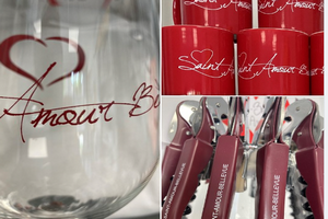 Nouveautés! en vente à la régie du tourisme, verres siglés Saint- Amour -Bellevue, mugs, tire bouchons